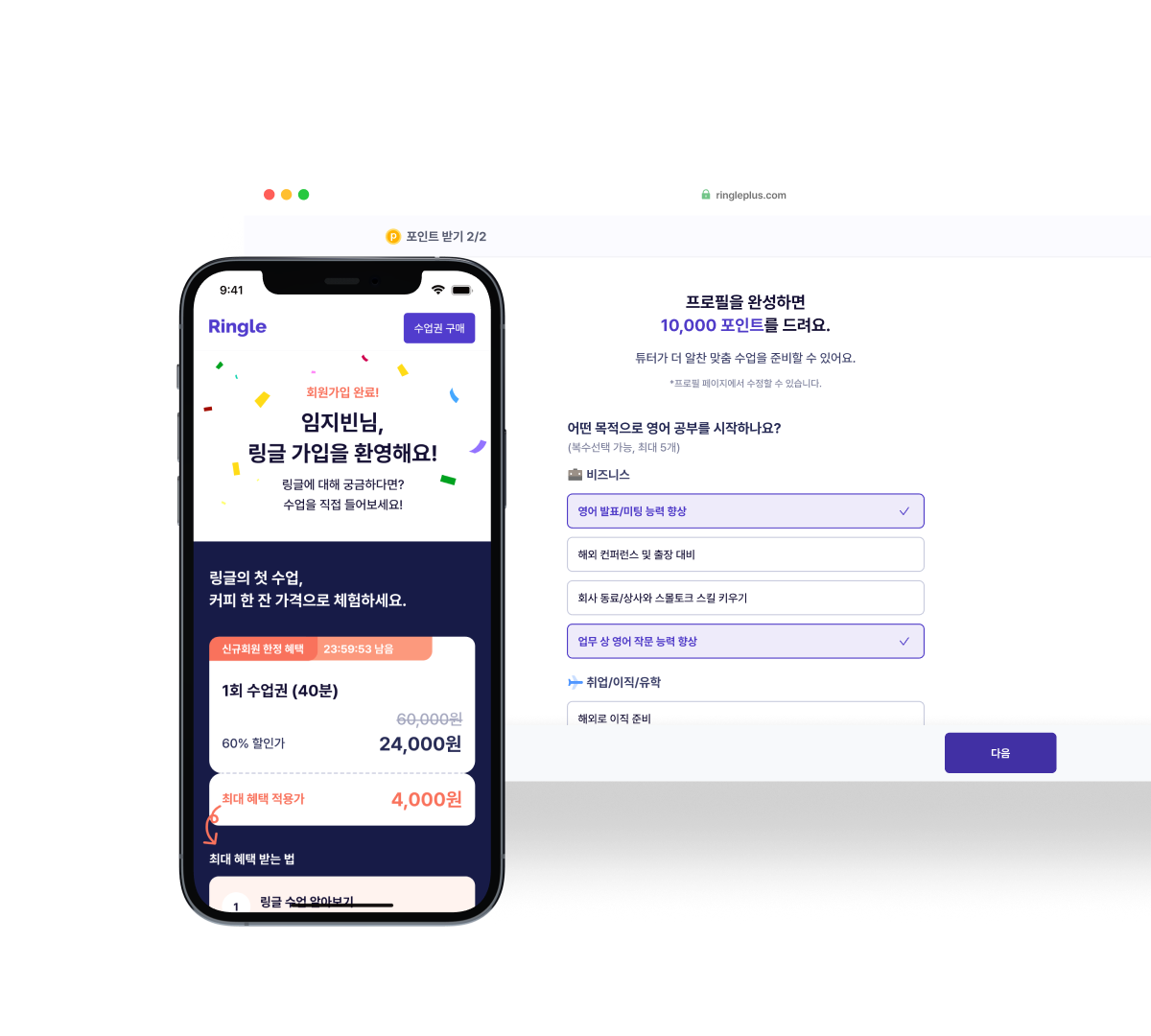 Designed and launched a standalone AI-powered English learning product focused on job-specific communication scenarios. Expanded Ringle's existing AI Discussion feature into a structured learning product with curriculum-based expression learning, AI role-playing, and discussion practice — targeting B2B and cost-sensitive users.